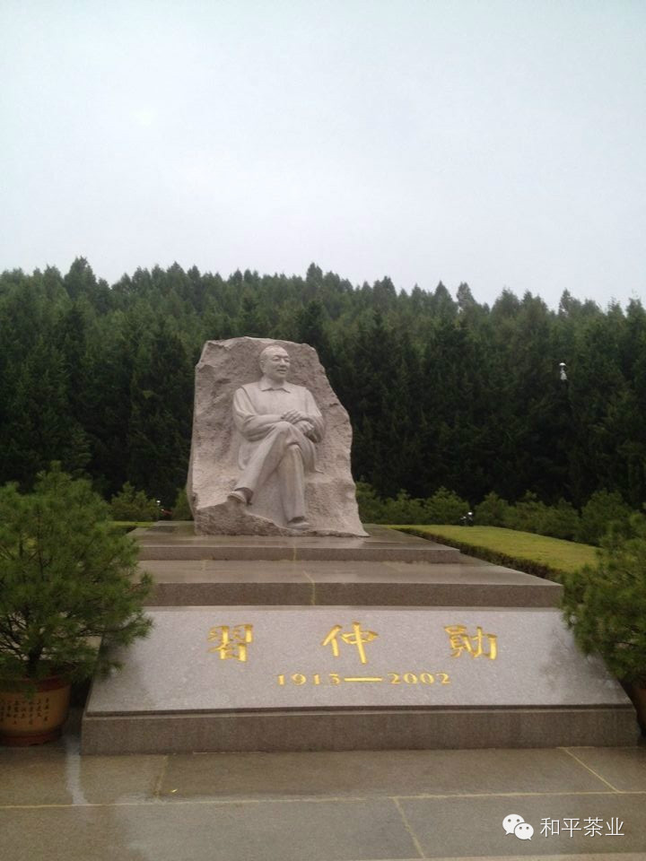 当天和平茶业一行特地去拜谒了老一辈无产阶级革命家习仲勋纪念馆,习仲勋纪念馆依山而建,位于陕西省富平县城西北迤山脚下的陶艺果林园附近的树林里,内植侧柏、龙柏、白皮松、火球等。习仲勋同志的石刻座像座落在陵园中央,陵园庄严肃穆简朴大方,雕像背面有夫人齐心书写的习仲勋语“天天战斗,天天快乐;奋斗一生,快乐一生”。