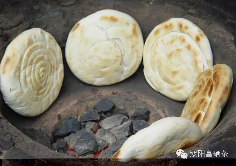 将涂拌了花椒、盐、油汁的面块撮成条状,左右扭动挤压成饼,外炕内烤而成,其形整齐圆旋,其味脆麻可口。